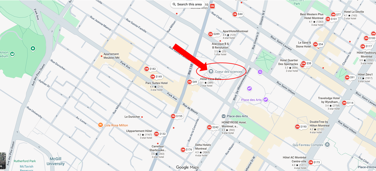 Our meeting venue is very close to Old Montreal, a historic area southeast of downtown containing many attractions such as the Old Port of Montreal, Place Jacques-Cartier, Montreal City Hall, the Bonsecours Market, Place d’Armes, Pointe-à-Callière Museum, the Notre-Dame de Montréal Basilica, and the Montreal Science Centre.